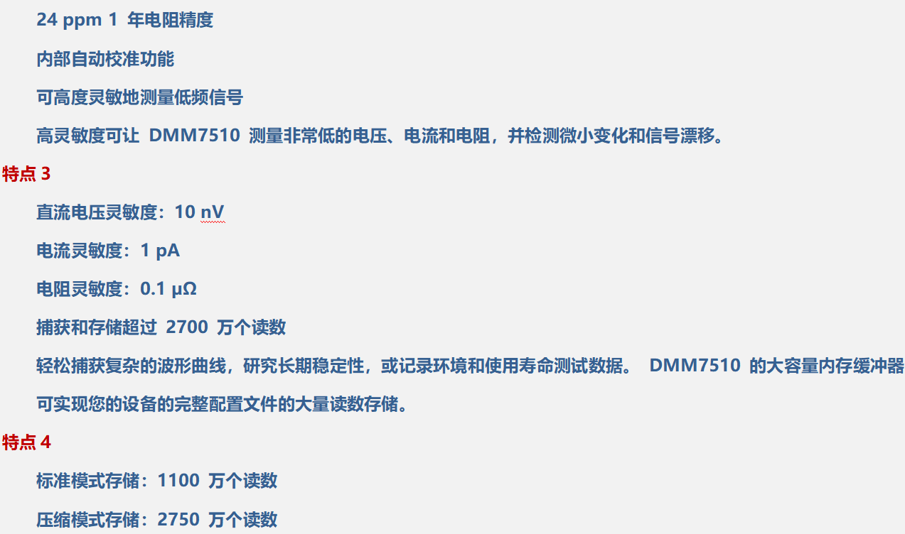 DMM7510集高精度、高分辨率数字万用表 (DMM)、图形触摸屏显示器和高速、高分辨率数字化器于一身,是第一款图形采样万用表。 其具有pA 灵敏度和1M个样点/秒的采样率,能准确测量超低睡眠模式电流和传输无线设备的漏电流。