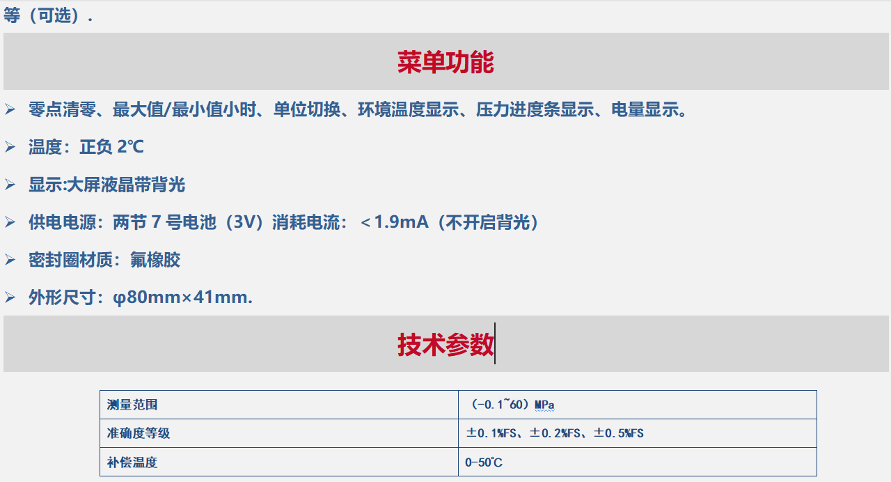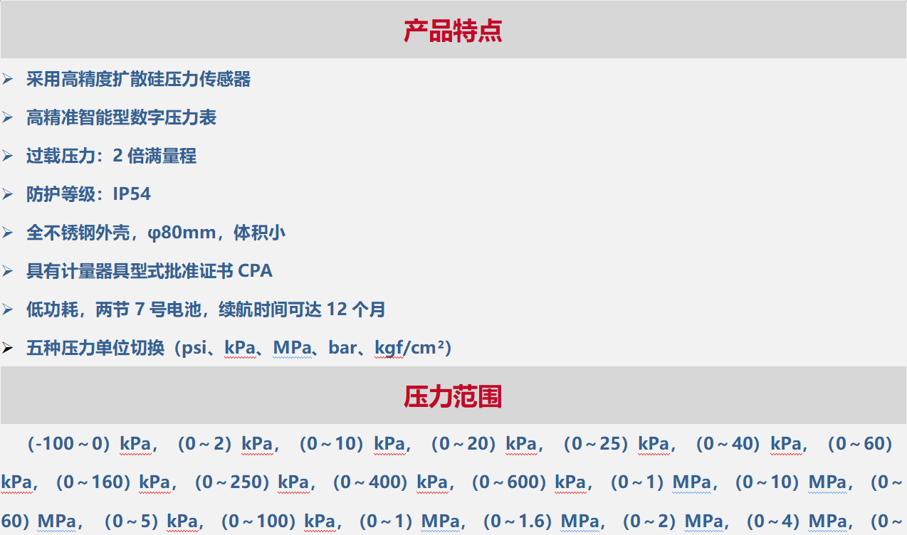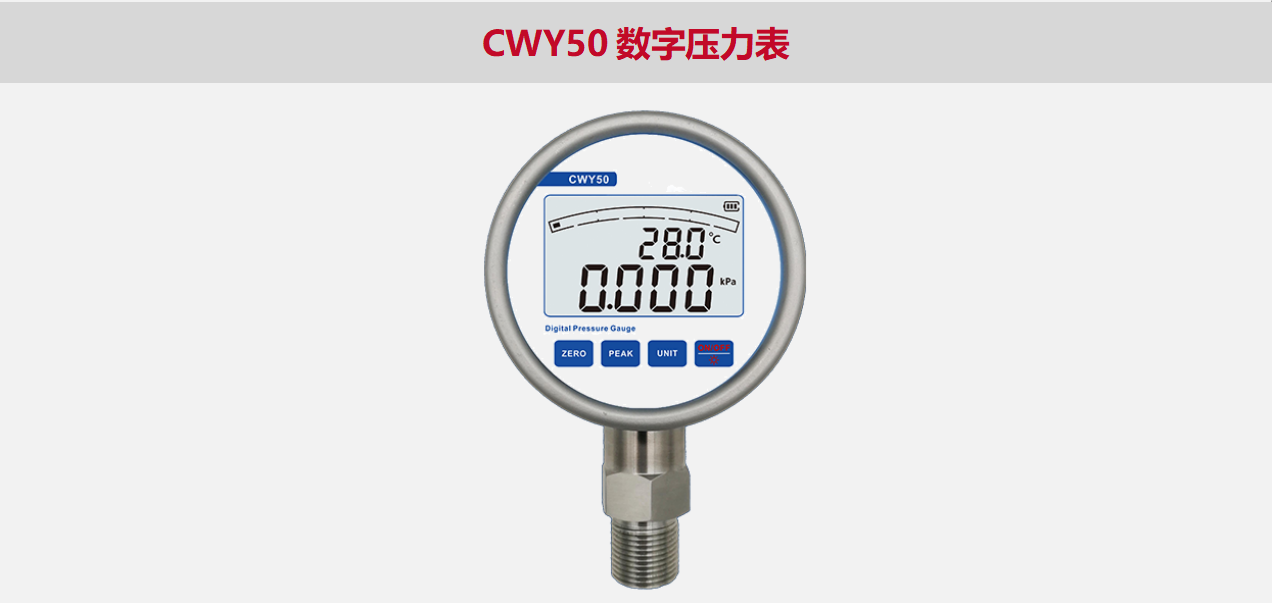 CWY50数字压力表采用高精度扩散硅压力传感器,电路部分采用24位专用AD处理芯片,和工业级MCU,适用多种现场的实时监测。