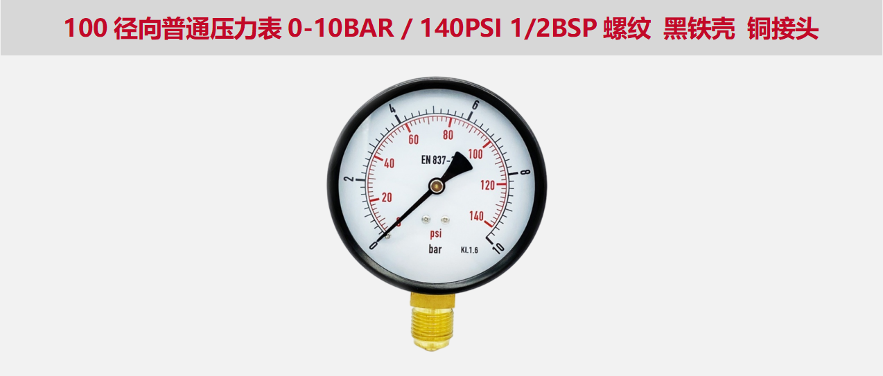 P63径向普通压力表 0-16bar 1/4BSP螺纹