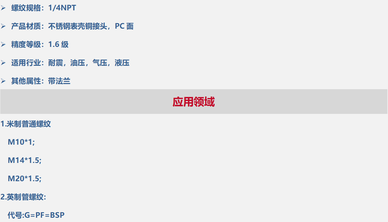 Ø 产品材质:不锈钢表壳铜接头,PC面