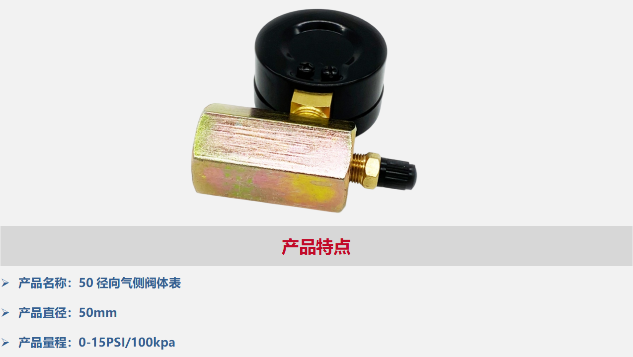 Ø 产品名称:50径向普通压力表气侧阀体表