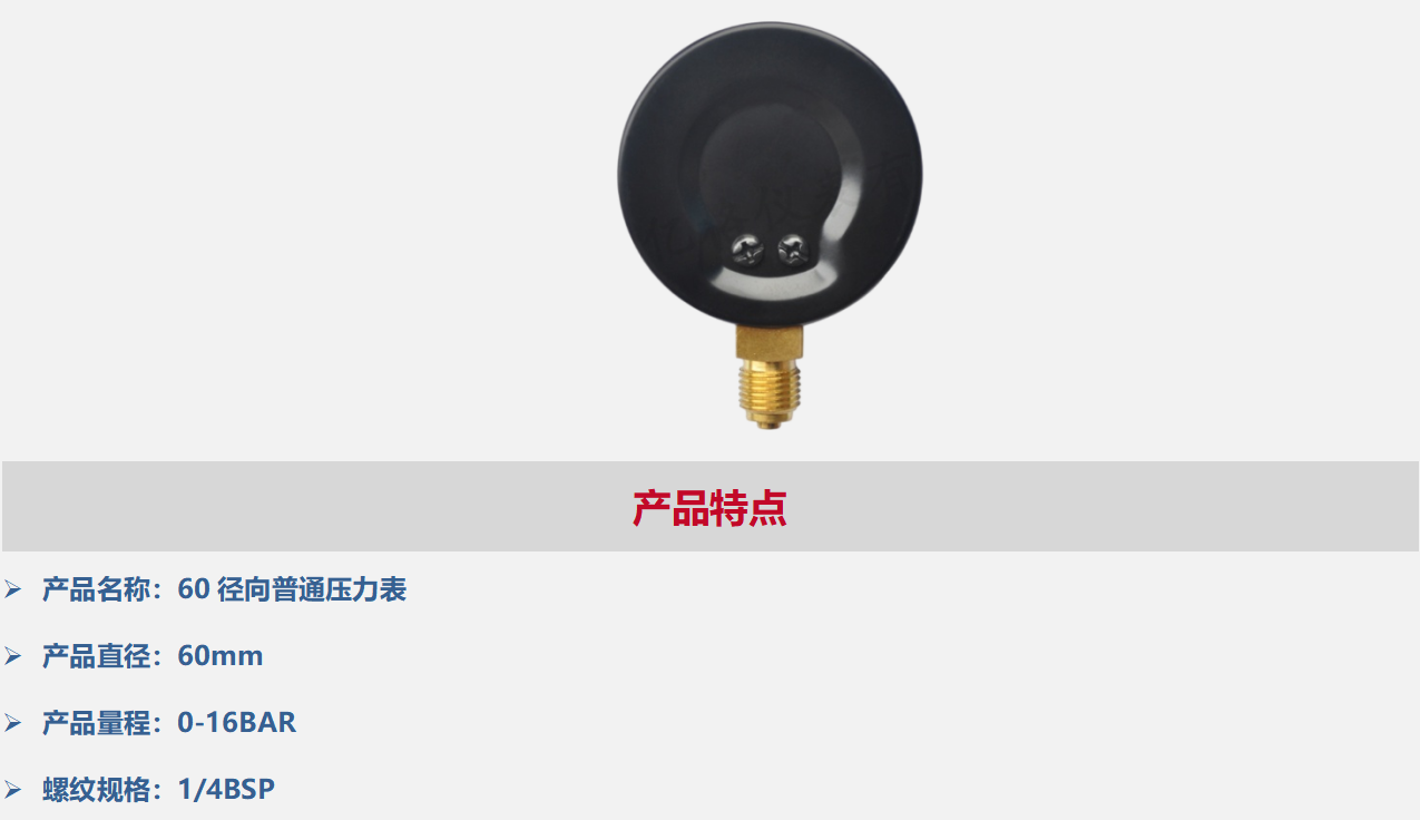 P60径向普通压力表 0-10bar/150psi 1/4bsp螺纹