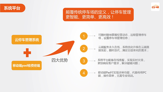 行呗停车,以云技术为平台,以支付方式为纽带,以电子卡券为扩展,诸多核心技术支持下,实现停车场扫码支付出场、云平台实现集中管理、电子卡券提升商业价 值,致力于打通线上线下使用场景,颠覆传统停车场的定义,让停车管理更智能、更简单、更高效!